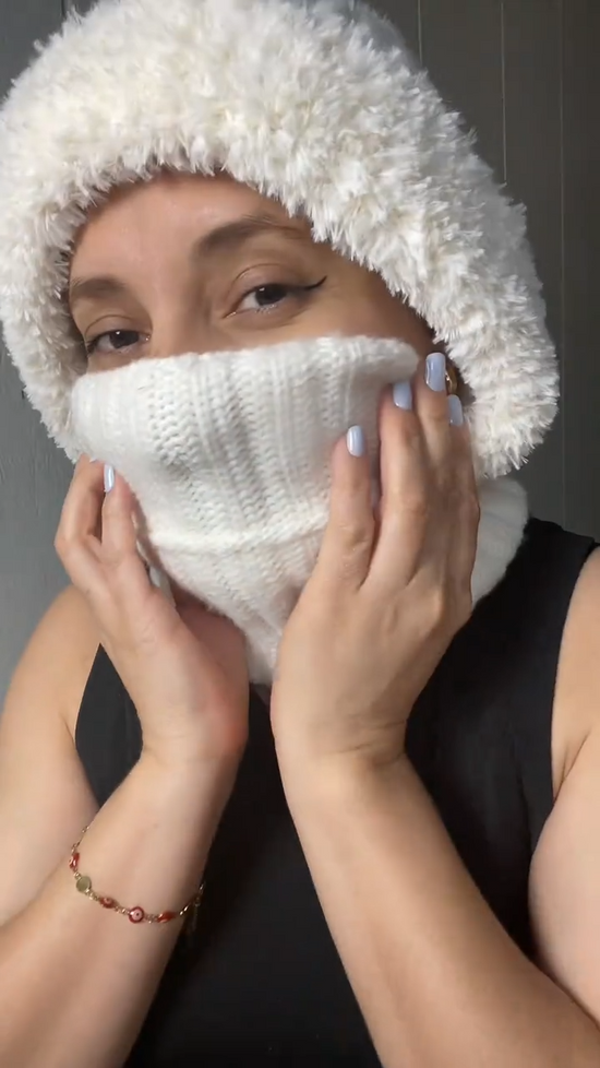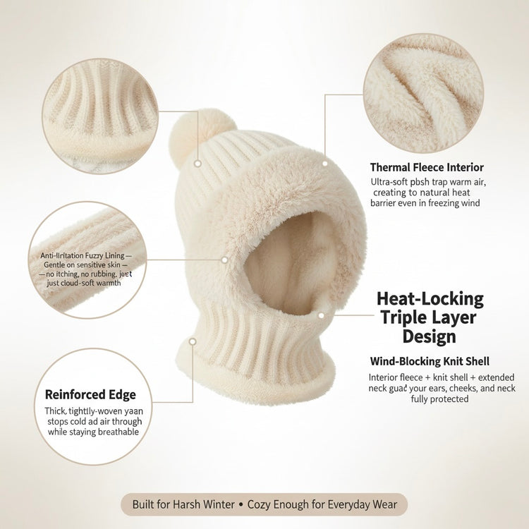 🧣 Full Head & Neck Warmth — Plush knit covers ears, head & neck