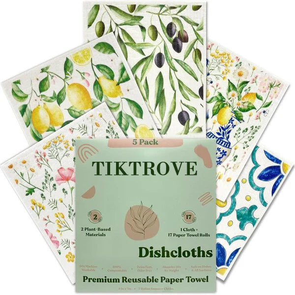 Each cloth lasts 50+ washes, replacing up to 17 rolls of paper towels. That’s 85 rolls saved in just one 5-pack!