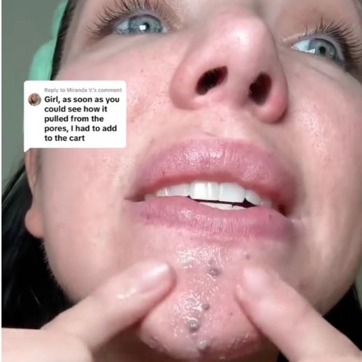 "I have actual large pores and could never unclog them. You see that big hole where it took out the gunk? The black one is stronger, white for smaller particles. It starts balling up whiteheads and blackheads in real time. So disgusting and satisfying. I don't even have words!"