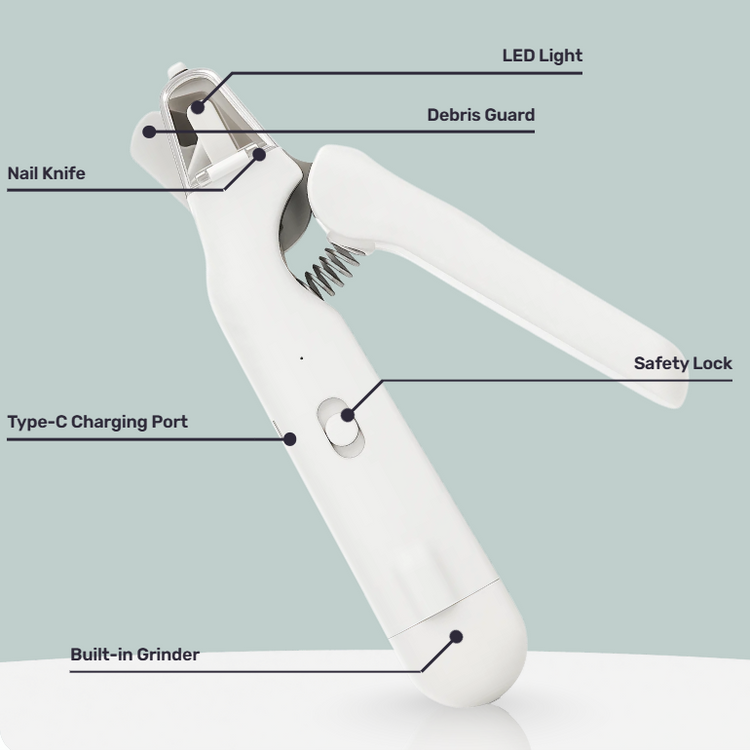 Built-in grinder gently rounds sharp edges after clipping, preventing scratches on skin, furniture, or floors.
