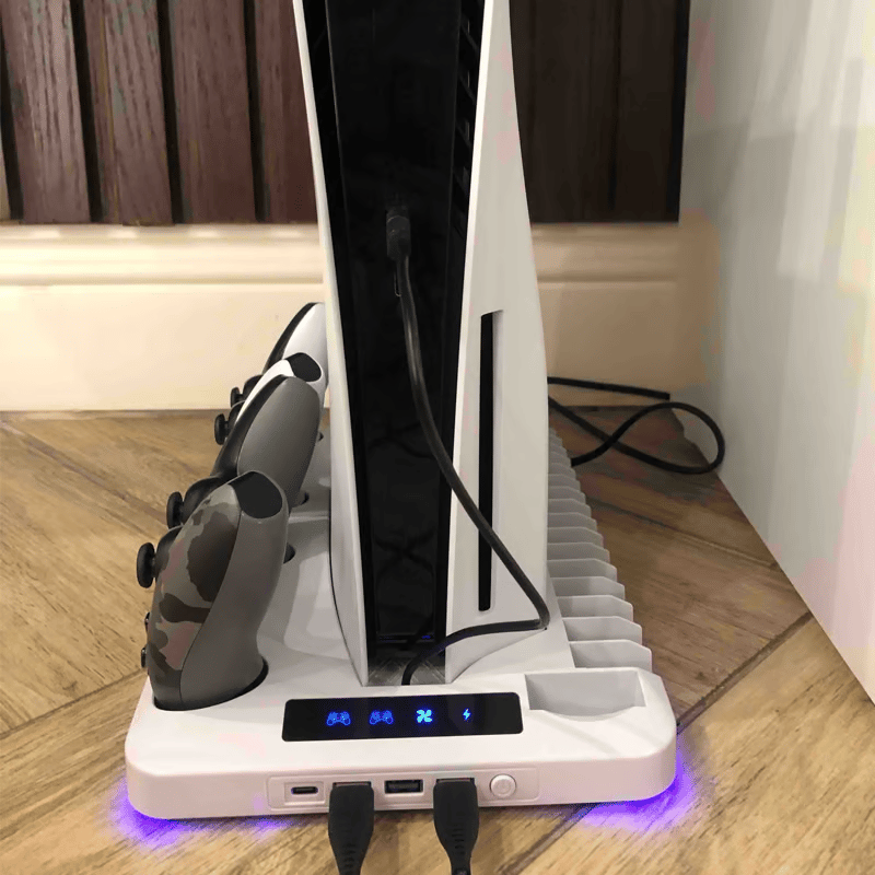I recently added the PS5 Slim Stand and Cooling Station with RGB LED Controller Charging Station to my gaming setup, and it has quickly become a standout accessory that combines functionality, style, and convenience.