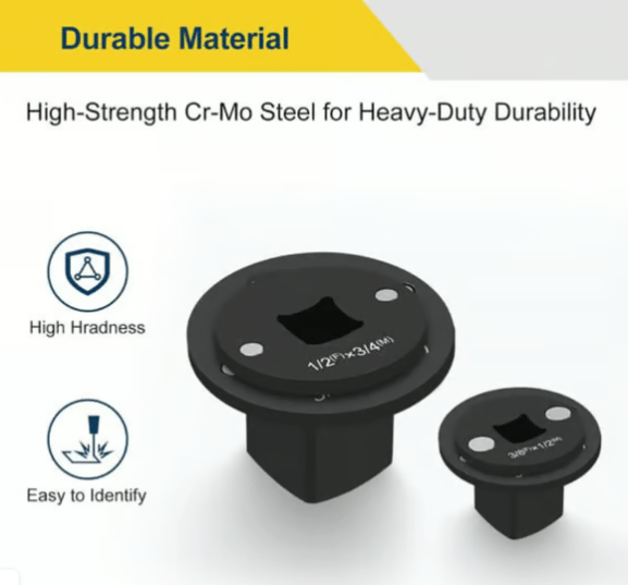 - Durable Cr-Mo Steel with Laser Markings: Constructed from high-strength Cr-Mo steel for superior durability and impact resistance, the drive ratchet adapter set are coated with rust-resistant black phosphate. Laser-etched size markings provide quick and accurate identification, ensuring efficiency during demanding tasks.