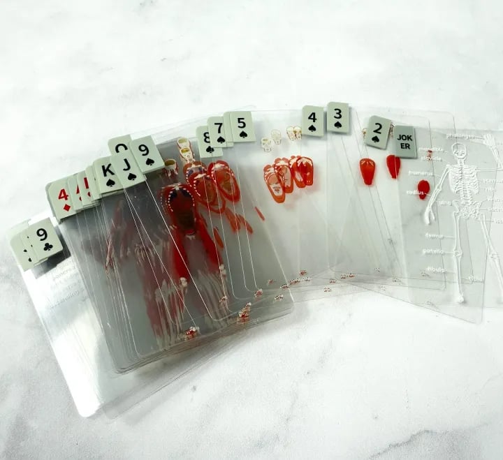 Meet the only deck of cards that’s literally got your back… ribs, femur, and skull too. Introducing The Body Deck – the transparent poker set that turns your royal flush into a "bone-afide" science lesson.