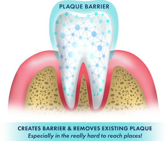 • Creates a barrier, preventing new plaque from attaching to teeth.