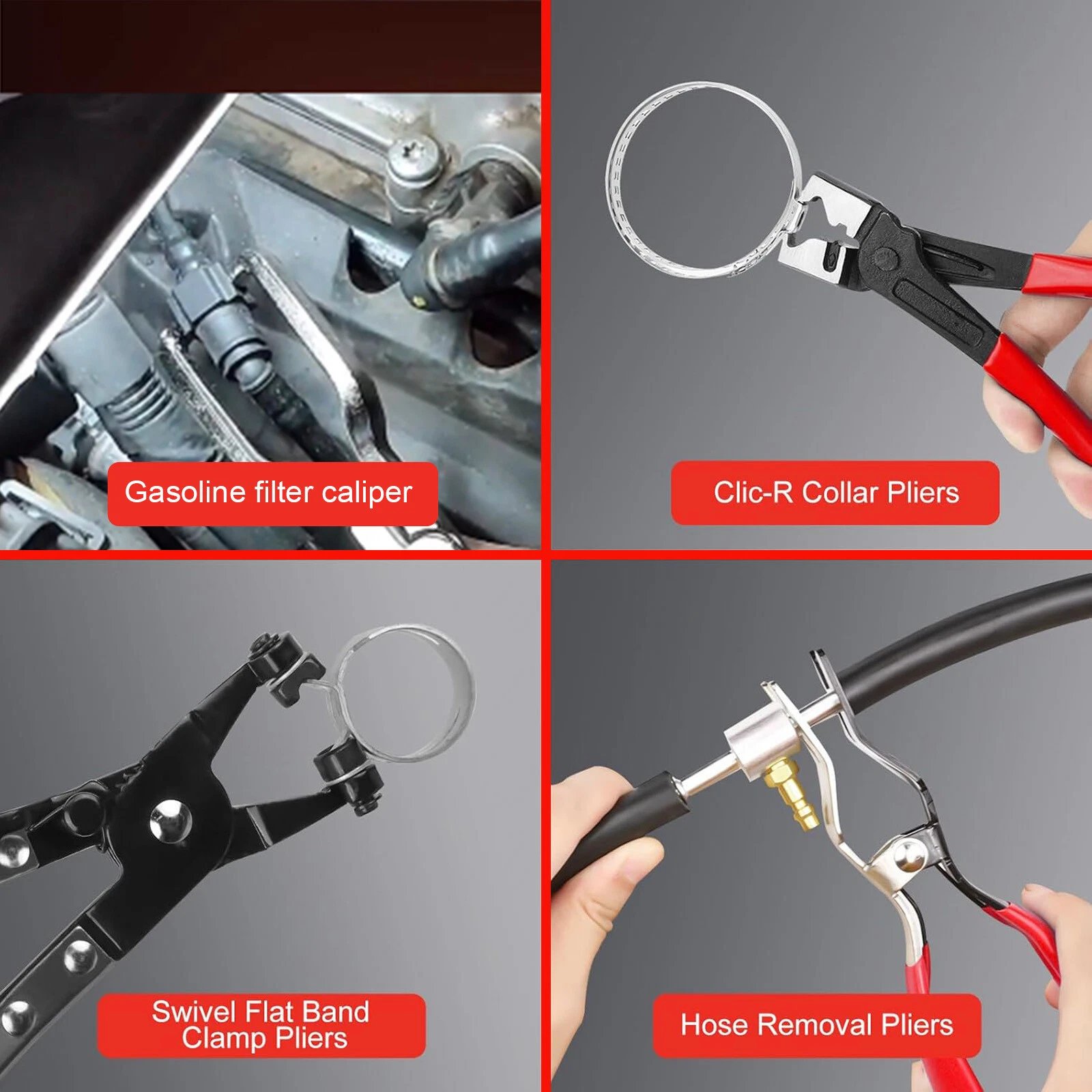 - Set Includes: 4 pliers – Hose Removal, Clic-R Clamp, Fuel Line Quick Disconnect, Hose Clamp