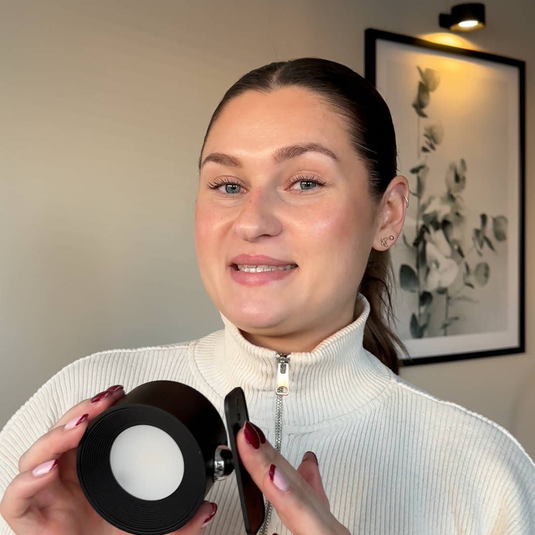 The Infinity Wall Lamp is easy to install and use. No tools or wires are needed – simply attach the lamp by removing one of the included adhesive strips, place it where you want, and hold it in place for a few seconds. Then you're done. The lamp's head can rotate 360 degrees to adjust the light as needed. When it's time to charge the lamp, simply remove it from the holder and connect it to the included USB-C charger. This lamp is perfect for places without wall outlets, where you don't want to drill or have hanging cables.