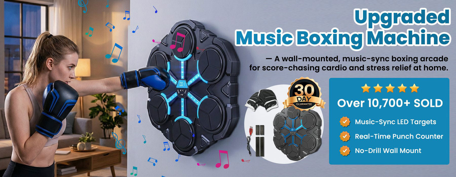 Quick setup, music-sync targets, and score-chasing motivation—made for people who want fun cardio without the gym.